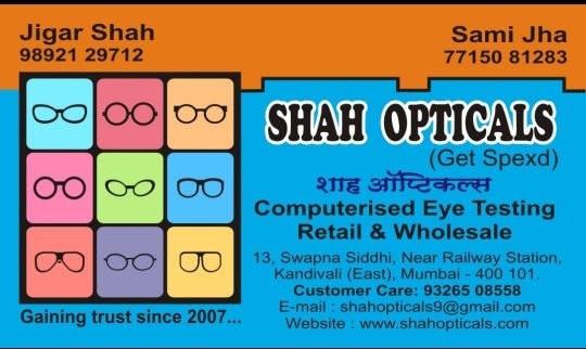 welcome to shah opticals we are in to the retail business since 2006,and being an importer gives us an edge to stay a step ahead with refrence to trends and price range. our main objective has always been to guide our customers the best they require according to their lifestyle and daily routine. Opticians In Kandivali |Specs shop In Kandivali |EYEWEAR STORE IN KANDIVALI|OPTICALS IN KANDIVALI|OPTICS IN KANDIVALI|EYEWEAR SHOP IN KANDIVALI|FRAM ... View More
